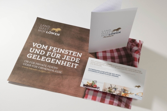 Das Sulger Hotel und Restaurant Landgasthof Löwen liegt im Herzen des Kantons Thurgau. Es bietet Räumlichkeiten für Familienanlässe und Seminare. Das Löwen-Team haben wir beim Rebranding des Landgasthofs unterstützt und diverse Kommunikationsmittel konzipiert, gestaltet und gedruckt.