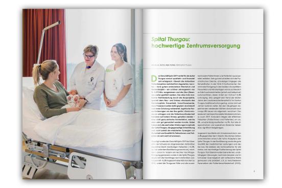 Eine Umsetzung ab Corporate Design. Für das Spital Thurgau übernehmen wir die Gestaltung von Druck- und Onlinemedien wie Broschüren und Geschäftsberichte. Zusätzlich stellen wir dem Unternehmen unser Redaktionssystem (SmartEdit) zur Verfügung.